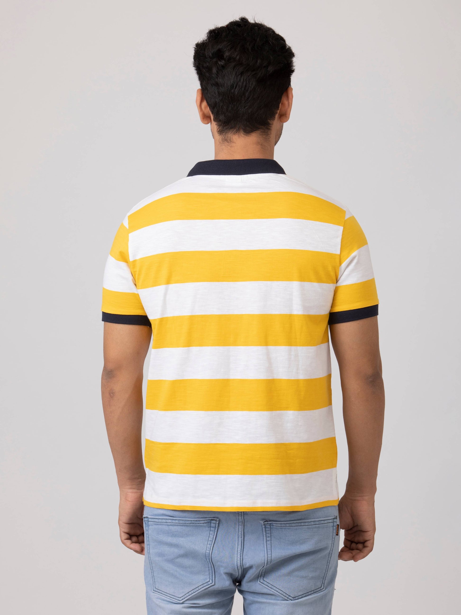 Polo Spirit Stripes Classic & Comfortable 100% Cotton Mens Collar T-Shirt - Yellow White