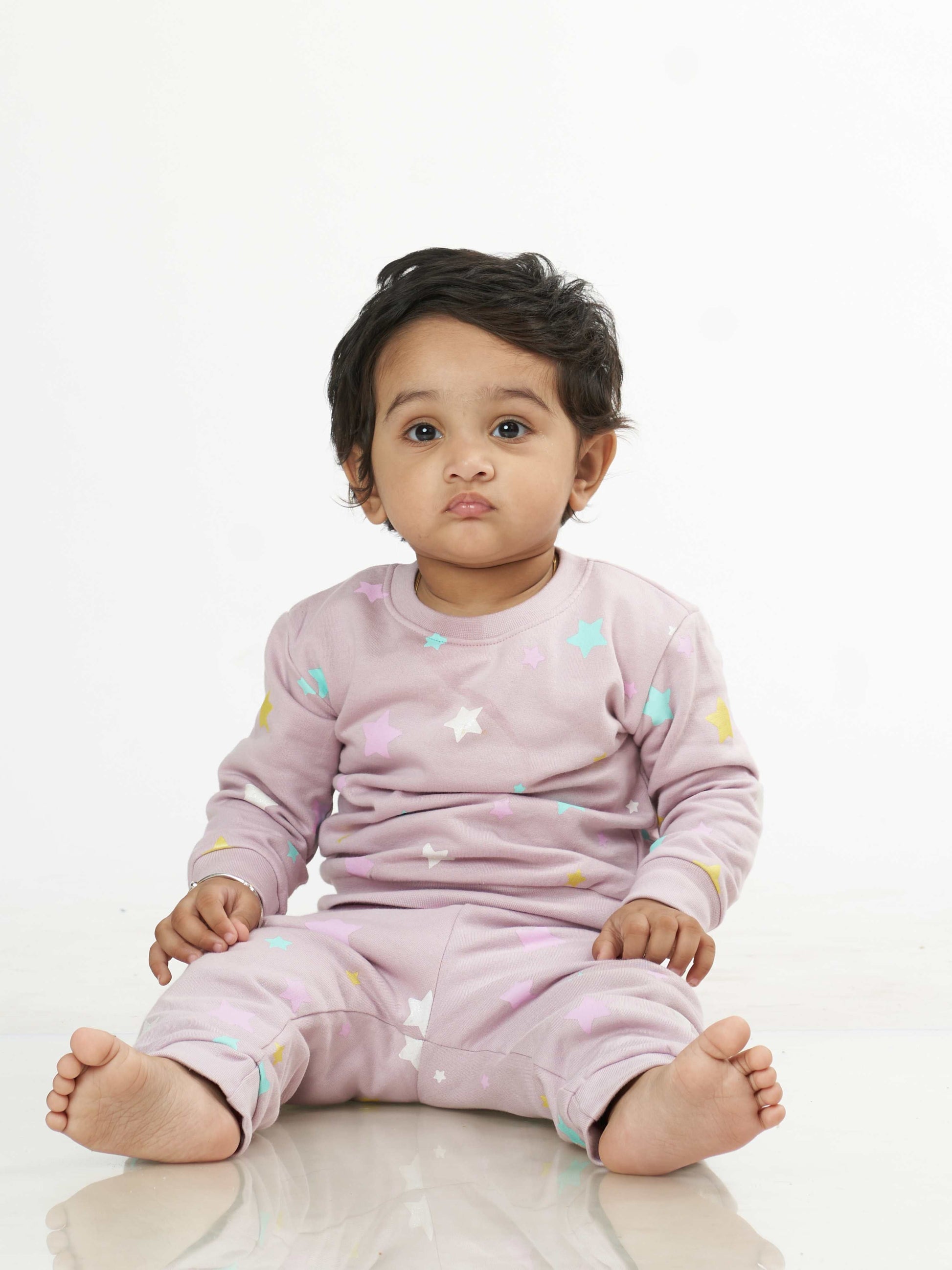"This soft and cozy 100% cotton baby pyjama set dress is perfect for a comfortable night's sleep. The dress features cute prints and a soft elastic waistband for a snug fit. The matching pants are loose-fitting and comfortable, with an elastic waistband for easy on and off.