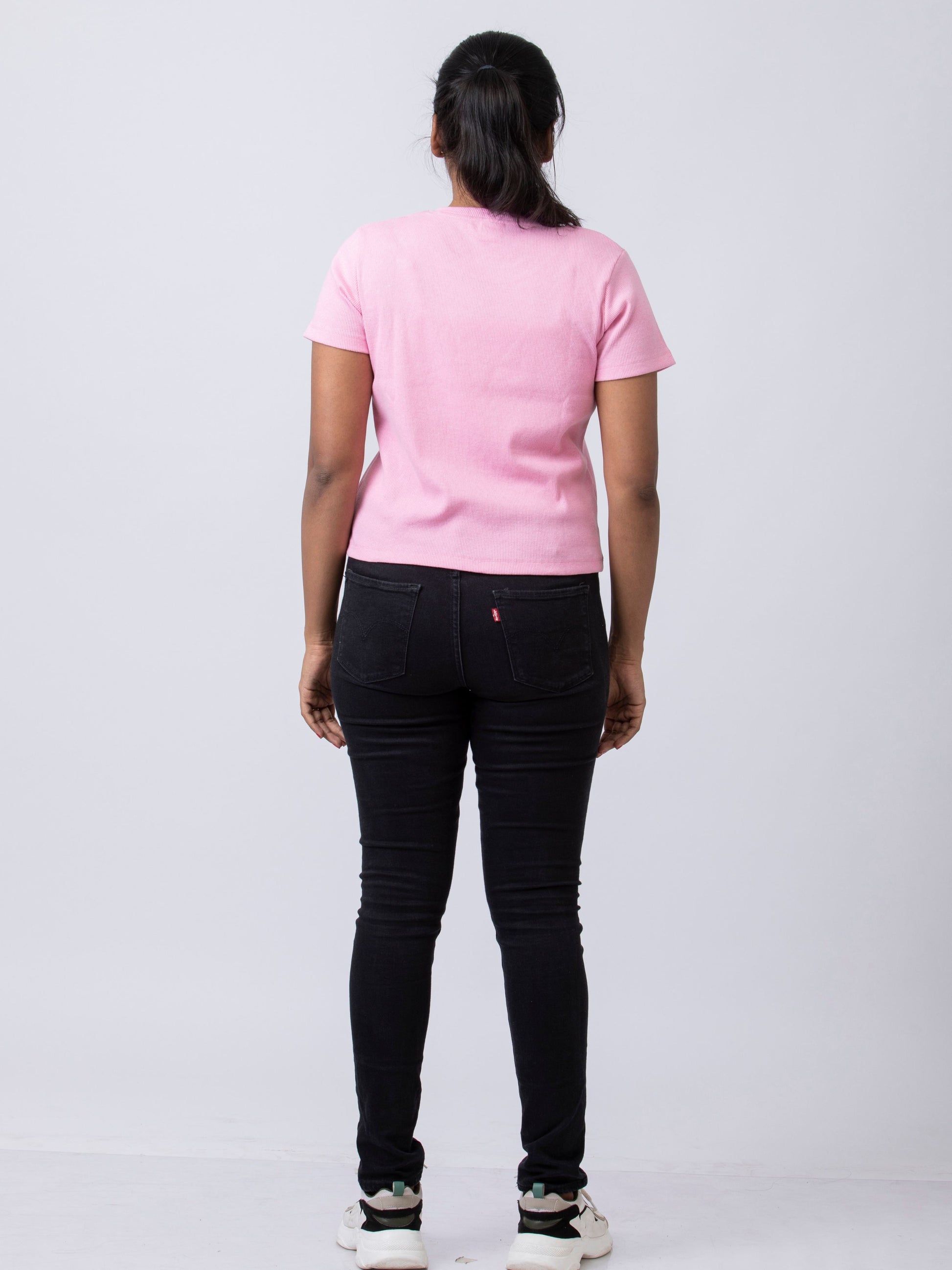 Women's Round Neck Rib Fabric Stretchy Winter T-Shirt - Pink